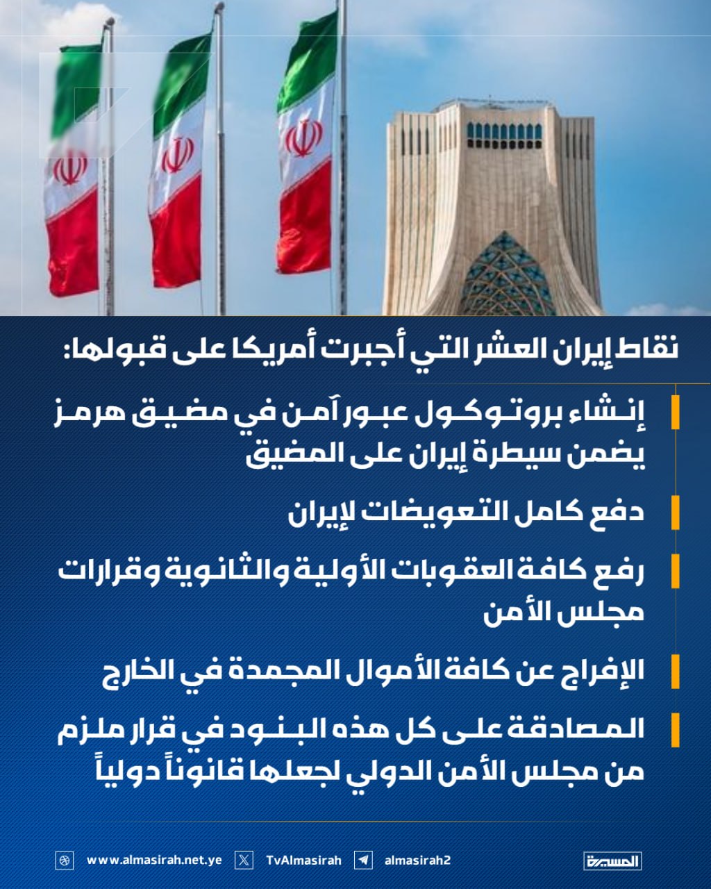 نقاط إيران العشر التي أجبرت أمريكا وكيان العدو على قبولها: