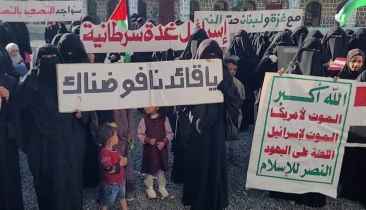محافظة المحويت: وقفة نسائية تحت شعار “ساحاتنا واحدة” لدعم فلسطين ولبنان وإيران