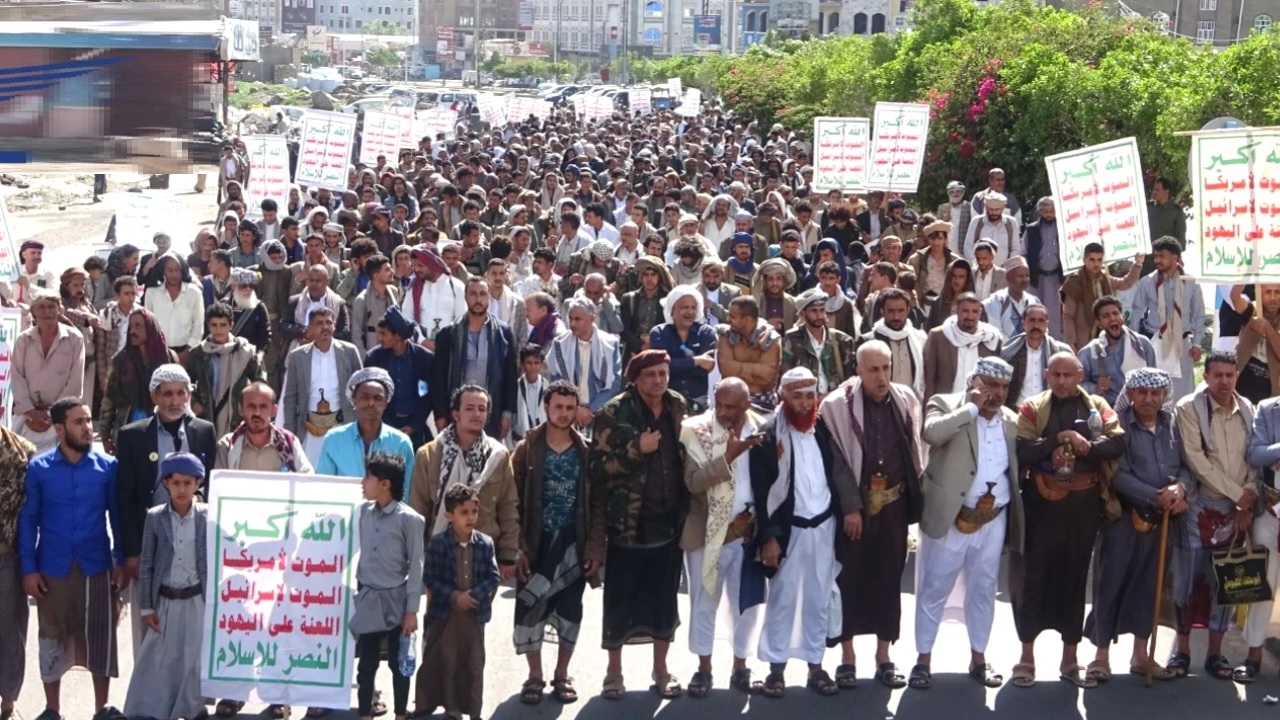 وأوضح بيان صادر عن المسيرات، أن خروج الشعب اليمني اليوم يأتي تأكيدًا على مواقفه الثابتة في مواجهة مخطط العدو الصهيوني المسمى بـ”إسرائيل الكبرى”، ومناصرةً لقضايا الأمة ومقدساتها وفي مقدمتها القضية الفلسطينية والمسجد الأقصى المبارك، ونصرة للأشقاء في لبنان وأبطال حزب الله المجاهدين، واستعداداً لكل التطورات المحتملة في مواجهة الأعداء.