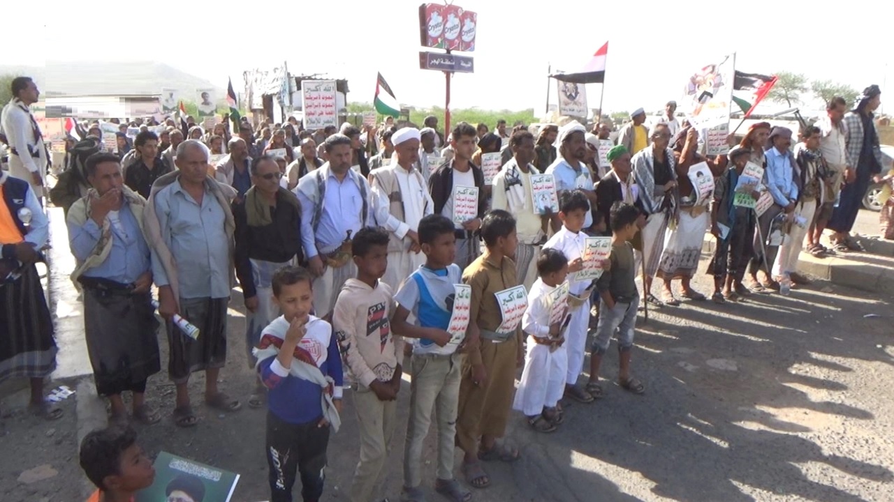 وجددّ المشاركون في المسيرات بمركز المحافظة والمديريات، التأكيد على مواصلة الصمود والتمسك بقضايا الأمة وفي مقدمتها القضية الفلسطينية والتضامن الكامل مع الأشقاء في لبنان وحزب الله وإيران والتوكل على الله حتى تحقيق النصر الموعود.
