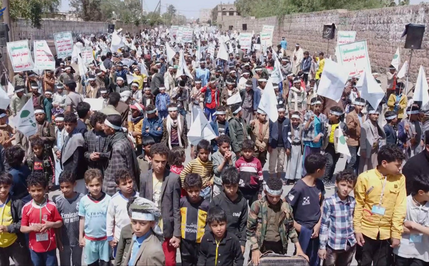 ورفع المشاركون، يتقدمهم قيادات قطاع التربية والشباب بالمحافظة، شعارات الهوية الإيمانية، مؤكدين عبر بيان المسيرة تمسكهم بالمشروع القرآني في مواجهة التحديات التي تستهدف الأمة