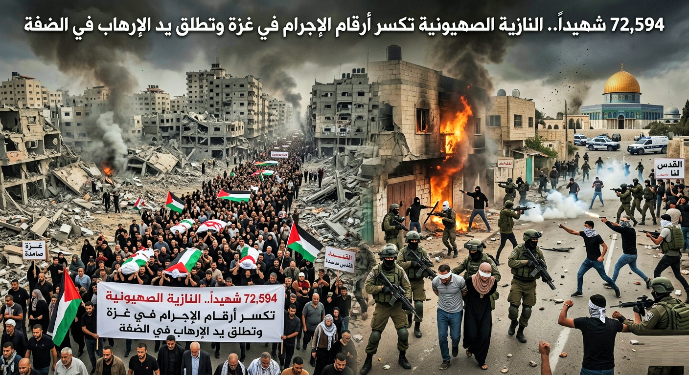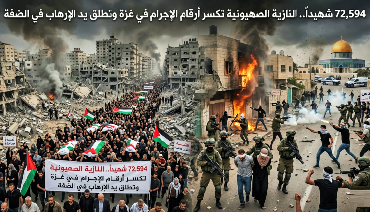 72,594 شهيداً.. النازية الصهيونية تكسر أرقام الإجرام في غزة وتطلق يد الإرهاب في الضفة