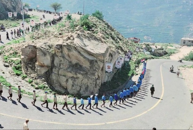 وخلال المسير الذي انطلق من مقر المدرسة وصولاً إلى المقام، رفع المشاركون العلمين اليمني والفلسطيني، تأكيداً على الارتباط الوثيق بالقضية الفلسطينية والموقف المبدئي للأمة تجاهها