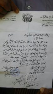 وحصل يمني برس على وثيقة لمحققين تابعين للأمن نزلوا الى المنطقة للمعاينة تؤكد ان البئر قديمة ولا تؤثر على أحد بل تخدم المواطنين وتنفي التهمة التي اعتمد عليها مشائخ المؤتمر إلا ان الشيخ ابوراس قام بنقل المواطن عبدلله العسالي الى سجن مجهول في المحافظة في عمل همجي حسب تعبيرهم وتأكيد على عدم اعترافهم بالدولة واعتمادهم على سجن خاص بهم.