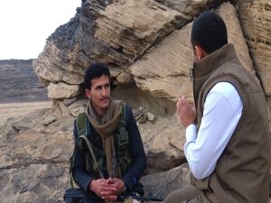 في أرضٍ يُشرف عليها العدو من كل جانب لا ساتر يحمي من رصاص ولا منجا من نيران المتوسط والخفيف من الأسلحة، يخترق هذا المجاهد قواعدَ الاشتباك ويجتاز خط النار وشبكته الممتدة في أطراف الجوف الشرقية، ليُخْليَ جسد رفيقه الجريح ..